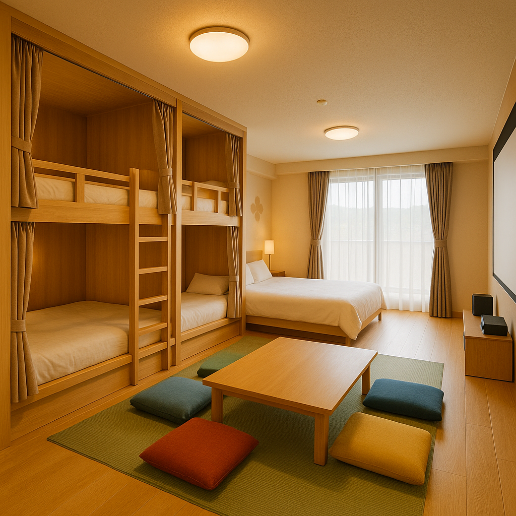 特に子連れの場合は、周りに気を遣わずに過ごせる広めの部屋やキッズフレンドリーな設備があると安心。